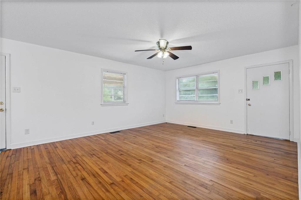 NO HOA- 2 Acres of unrestricted property. This 3 bedroom - 1.5 bath is move in ready. Freshly painted. Real hardwood floors in living room. Dining room. Kitchen has all appliances including the refrigerator. Primary bedroom and 2nd bedroom have a barn door that can be opened for lots of options. Laundry room is off of carport and includes washer and dryer. Large fenced, level back yard. Room for your RV or Boat or many other possibilities. Metal Roof & HVAC less than 5 years old. HVAC just serviced also. Buyer to verify all information during due diligence.